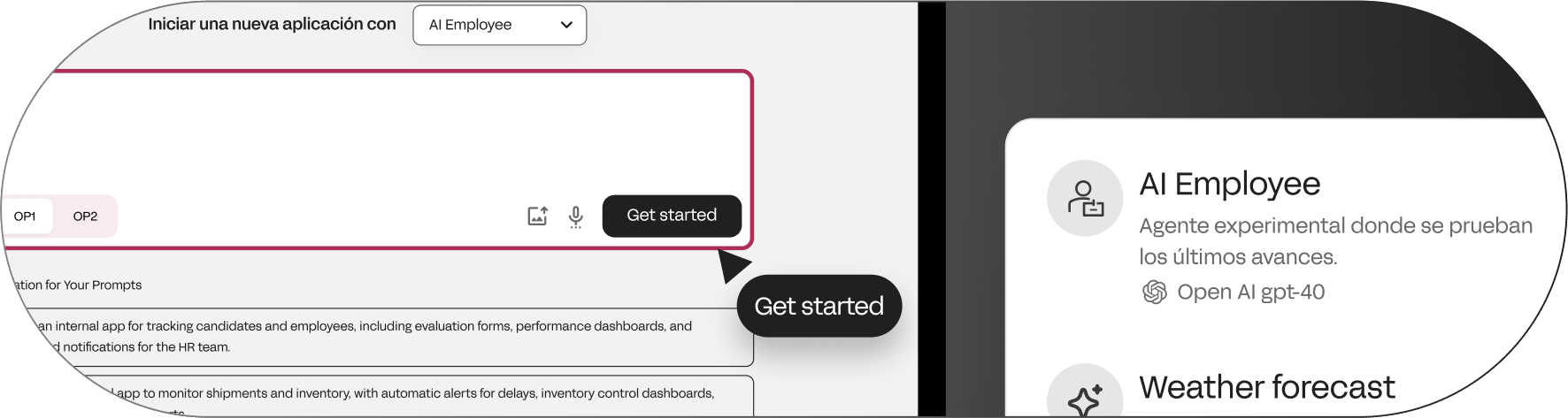 Start by creating an agent linked to an existing model. It will be the foundation for your apps.